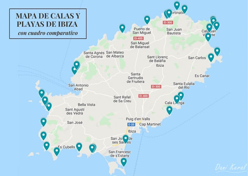 Map of the best coves in Ibiza